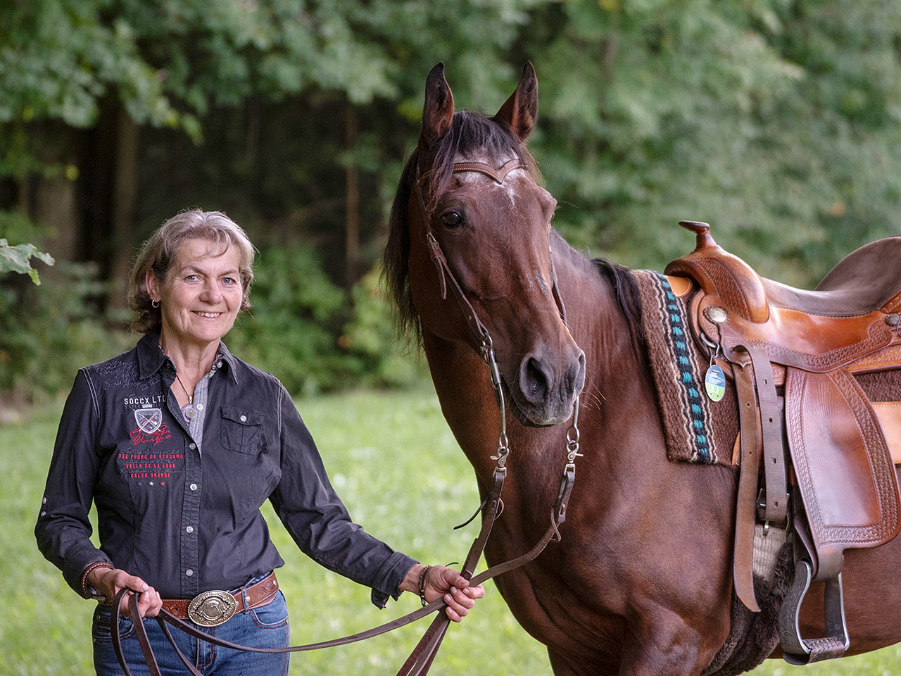 15 Hektar Wiesen und Wald mit idyllischen Passagen stehen für den kleinen Ausritt zur Verfügung.